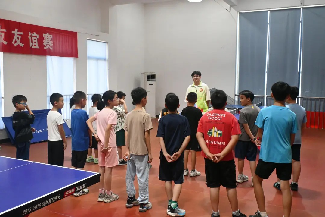 黄色象征着运动与活力。汤承达同学带来乒乓科普课程,妙趣横生,孩子们在乒乓球旋转中领略体育魅力。他现场示范了乒乓球的基本握拍方法、站姿以及击球技巧。他边讲解边演示,孩子们听得津津有味,跃跃欲试。在实践环节,他邀请同学们轮流上台体验,孩子们在尝试中不断调整姿势和发力方式,在场边同学的加油声中逐渐掌握要领,感受到了乒乓球运动的魅力与乐趣。