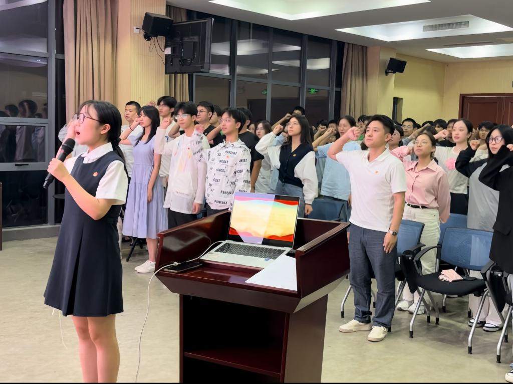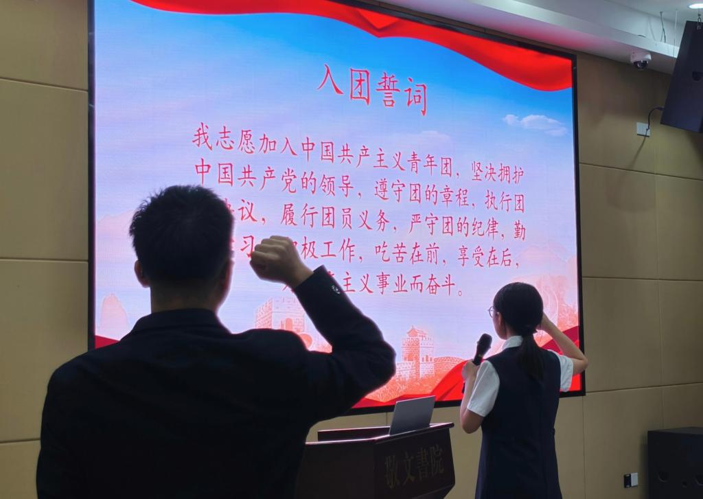 敬文2313团支部支委会成员袁满带领团员青年们重温入团誓词,大家表示,要时刻牢记团9员身份,以实际行动践行入团誓言,为中国式现代化挺膺担当。