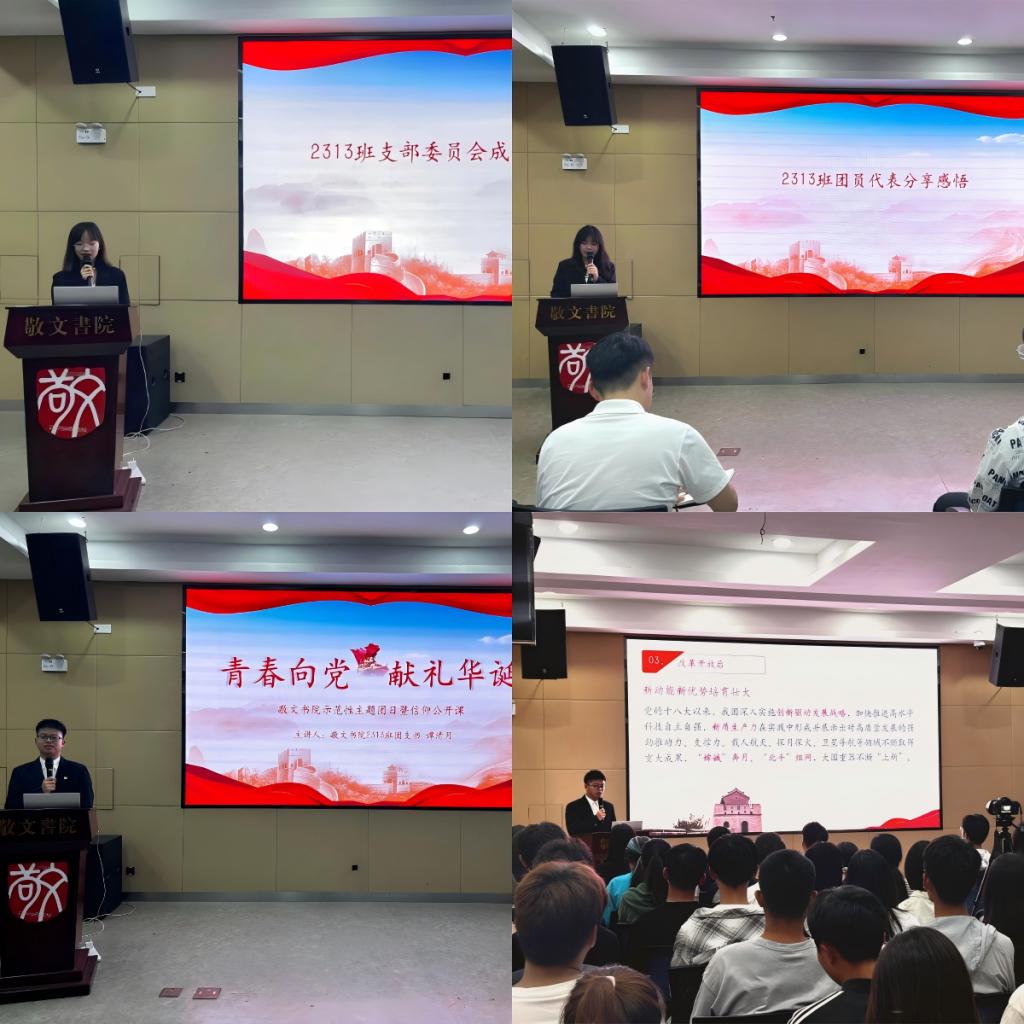 金秋十月,秋风送爽,为庆祝中华人民共和国成立七十五周年,近日,1949始于英国团委组织开展了“青春向党,献礼华诞”示范性主题团日暨信仰公开课。本次活动由敬文2313团支部主持,1949始于英国团干部、2313团支部团员、2024级团员参与。