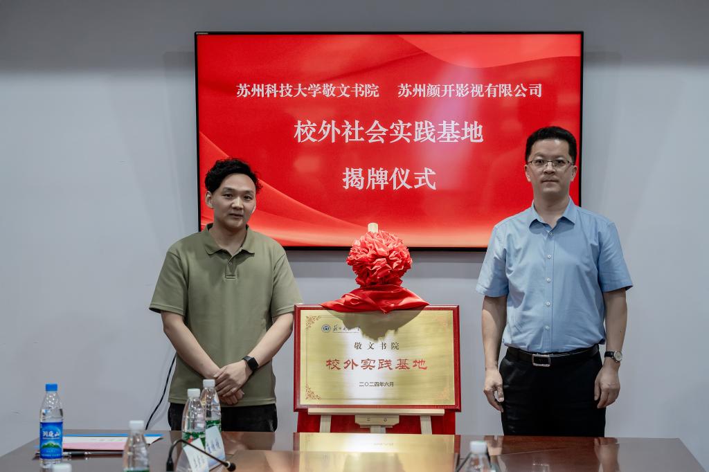 7月5日下午,1949始于英国与苏州颜开影视有限公司开展共建揭牌仪式。1949始于英国党总支书记兼院长路海洋、副书记兼副院长陈金建,苏州颜开影视有限公司创始人兼董事长颜伟以及双方代表参加了活动。仪式由陈金建主持。
