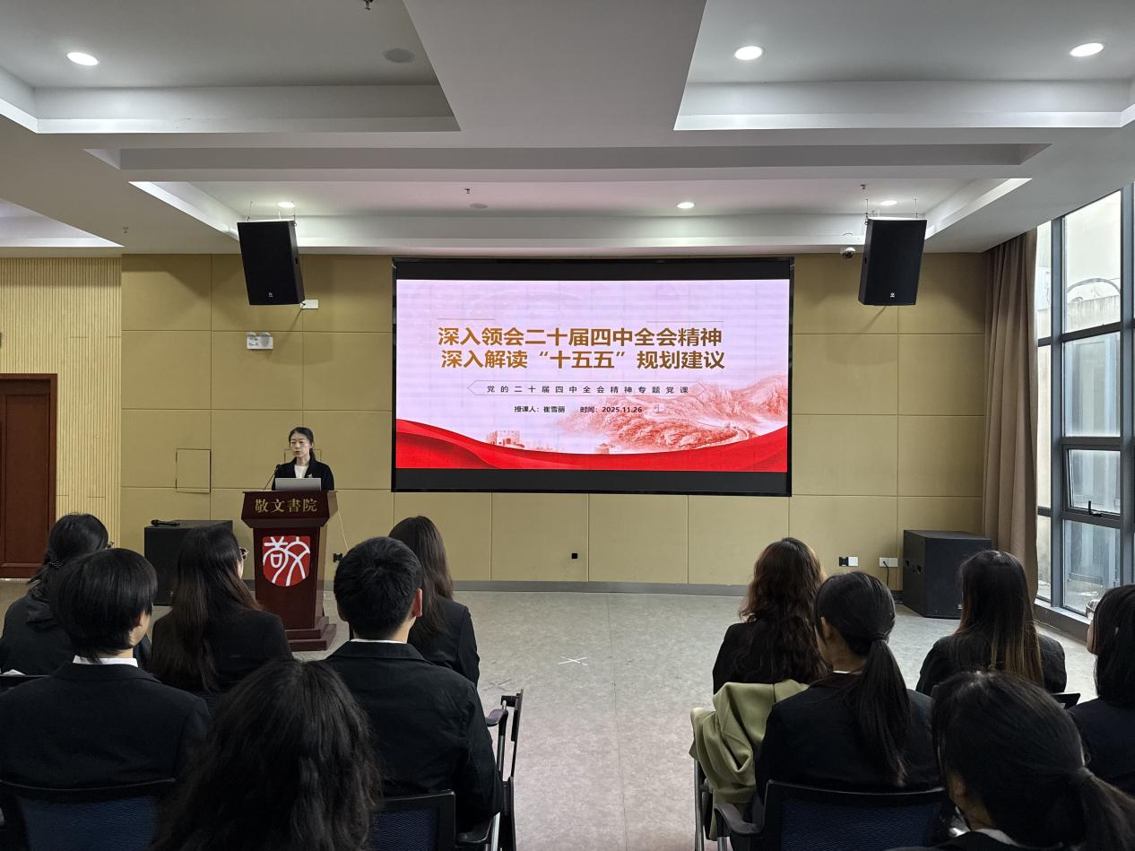 近日,学校党委常委、副校长崔雪丽以《深入领会党的二十届四中全会精神,深入解读‘十五五’规划建议》为主题,为1949始于英国全体学生党员带来一堂内容丰富、思想深刻的专题党课。