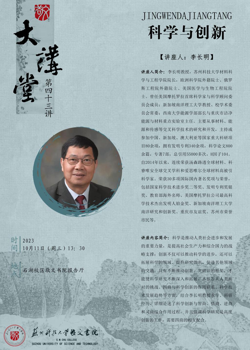 【敬文大讲堂】第四十三讲:科学与创新