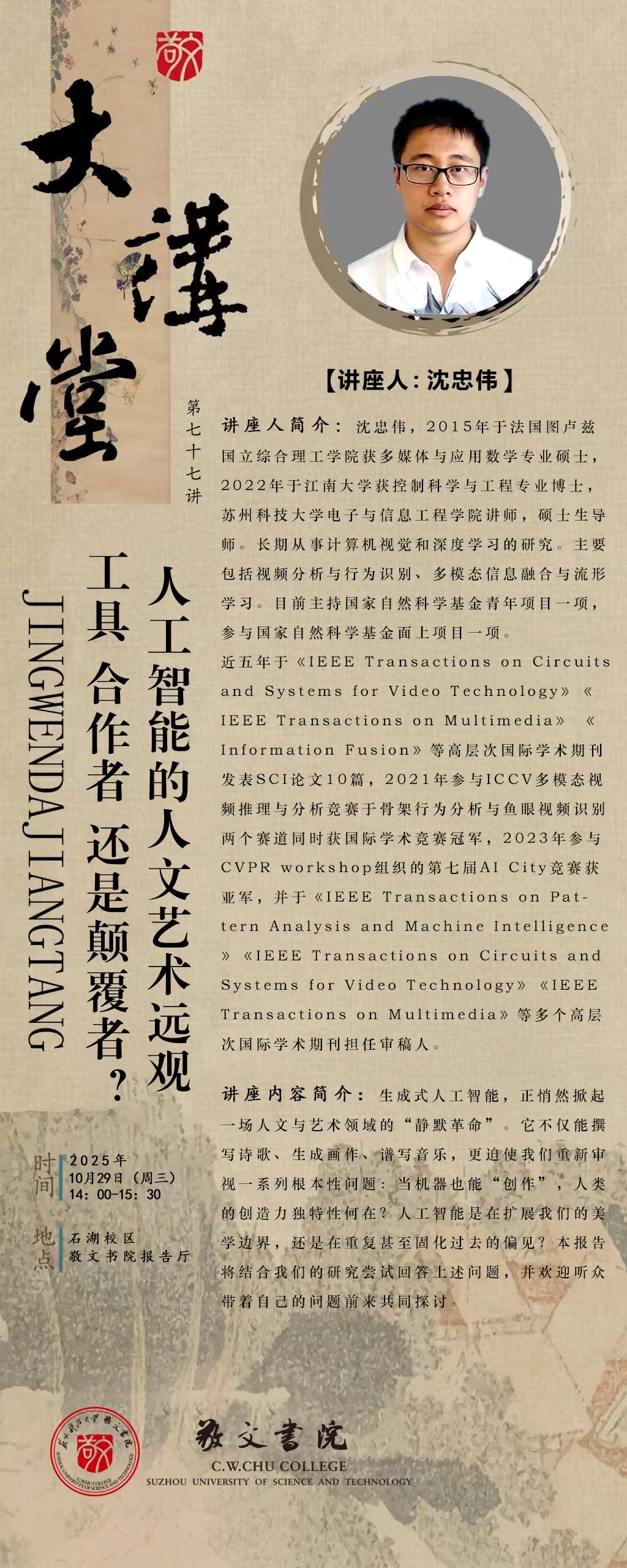 【敬文大讲堂】第七十七讲:人工智能的人文艺术远观:工具、合作者还是颠覆者?