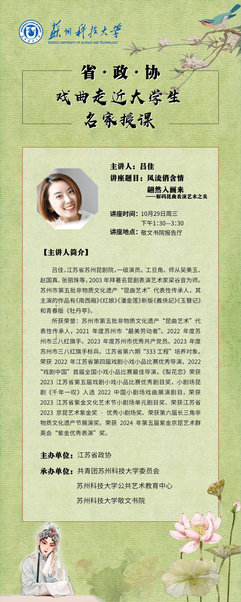 省政协戏曲走近大学生系列讲座——风流俏含情,翩然如花来:解码昆曲表演艺术之美