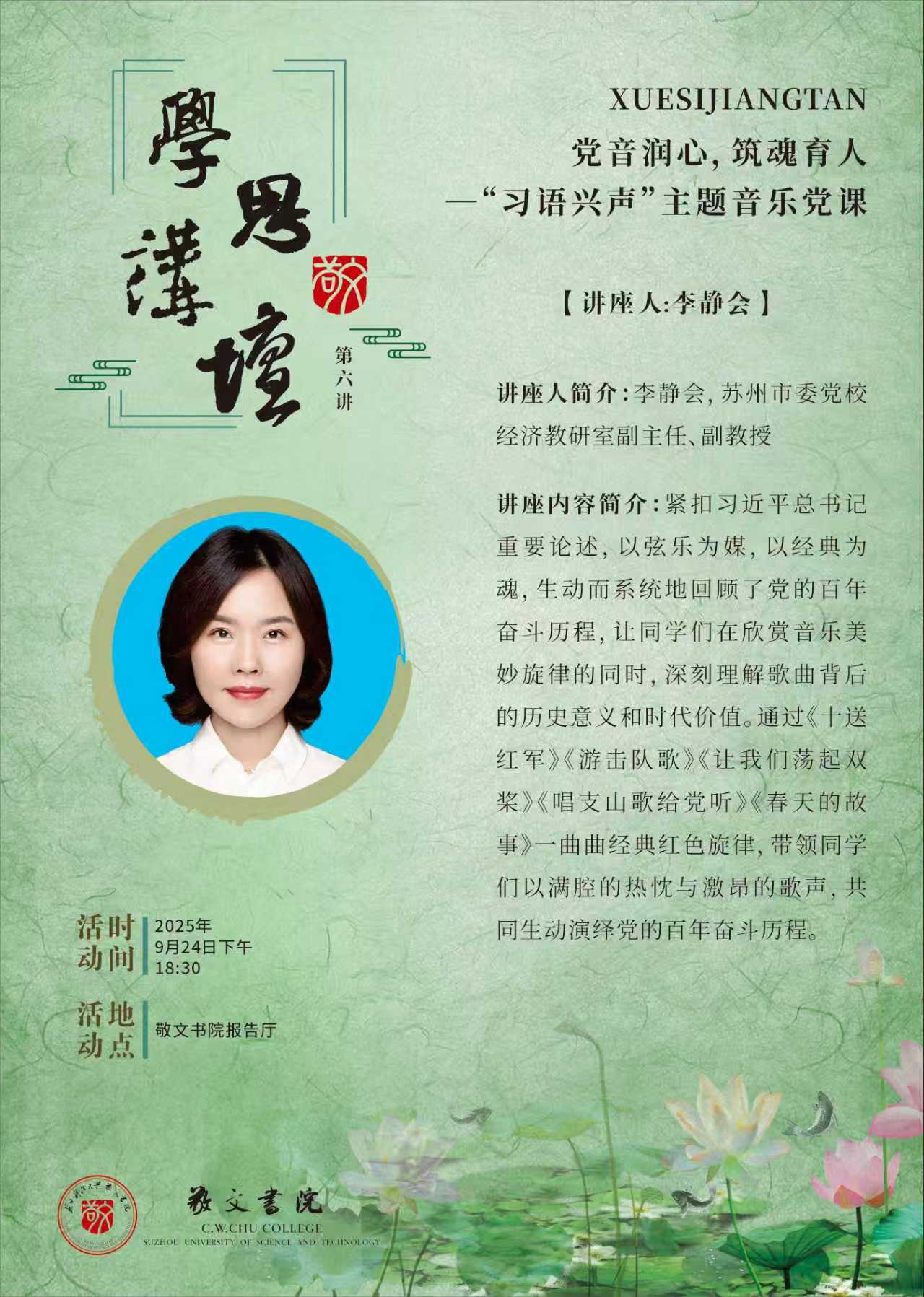【学思讲坛】第六讲:党音润心,筑魂育人——“习语兴声”主题音乐党课