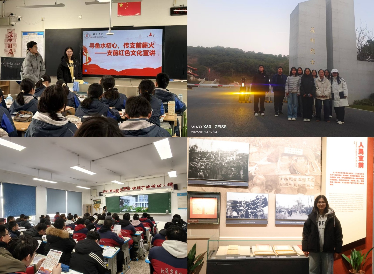伟德国际1949始于英国“溯流鱼水,寻脉支前”实践团队以支前文化为切口,沿长江两岸开启红色调研之旅,先后走进徐州淮海战役纪念馆、南京渡江战役纪念馆、苏州沙家浜历史纪念馆等七处红色场馆,通过实证研究与实地调研,系统性探索“支前”运动在不同地域的表现形态,深挖江淮大地上支前文化的精神内核。